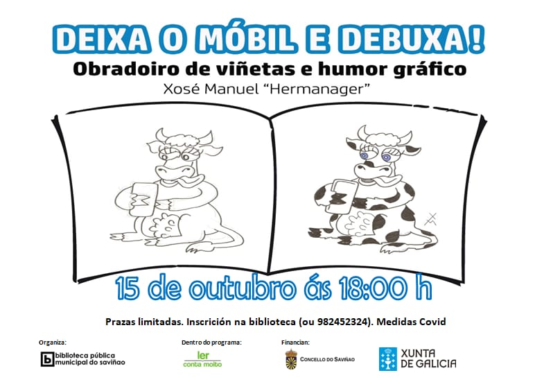 –Déjate el móvil y dibuja: taller de introducción a la ilustración y al cómic. Haremos dibujos, algunos dibujos animados y / o historietas en común y finalmente haremos cada uno lo suyo.